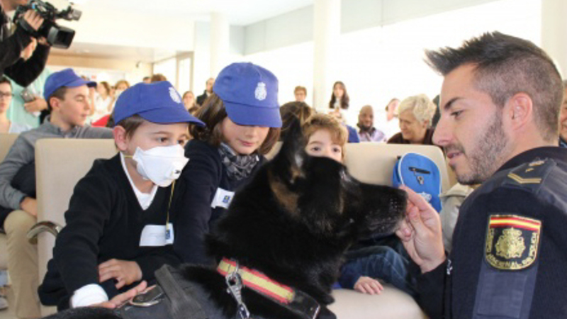 Børn indlagt på Mødre- og Børnehospitalet Gregorio Marañón var også til stede. Her var særligt to politihunde populære.
