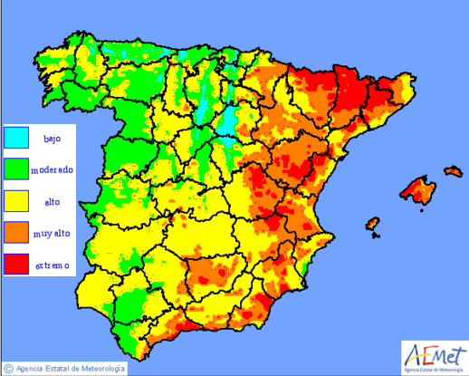 I dag er der fortsat stor brandfare i store dele af Østspanien