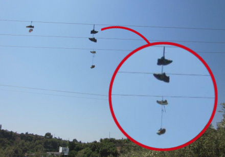 Inspireret fra bandemiljøet i USA smider folk deres slidte sko op i kablerne