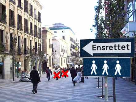 Der er nok ikke nogen, der har hidtil har hørt om en ensrettet gågade. Jeg har i hvert tilfælde ikke. Til gengæld har jeg under en juletur til Madrid oplevet livet som sild i en tønde på den centrale plads Puerta de Sol.