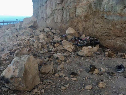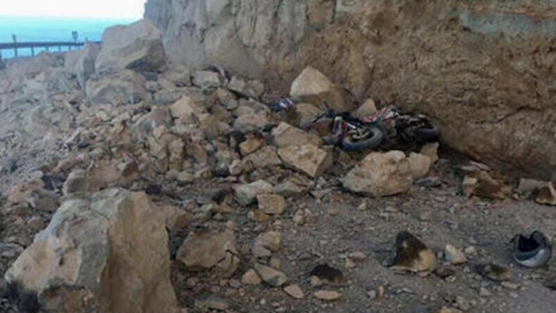 41-årig kvinde kom kørende på den gamle vej ved Mogán på Gran Canaria. Bag hende på scooteren sad hendes 15-årige søn, da et kæmpe stenskred pludselig væltede ned over vejen.