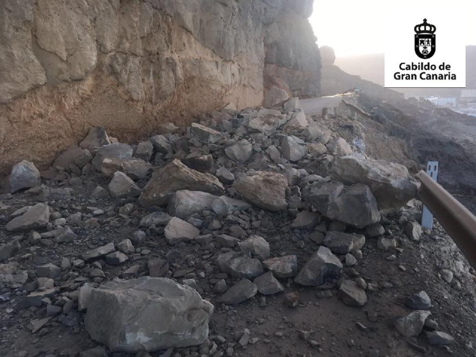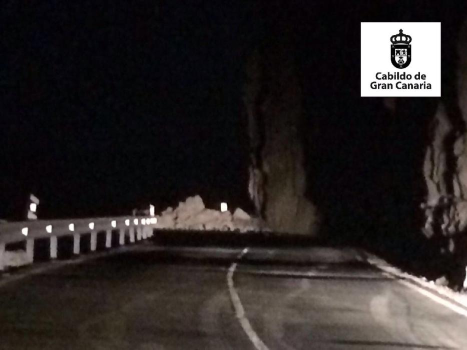 Begge blev bragt til hospitalet i Meloneras, hvor de fortsat er indlagt. Myndighederne har nu selvsagt lukket vejen for trafik på ubestemt tid for at reparere de 15 meter vej, der blev påvirket af stenskredet.