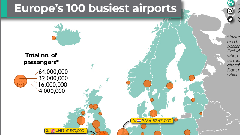 Hvor er de travleste passagerlufthavne i Europa?