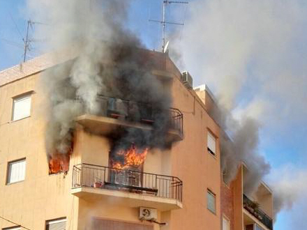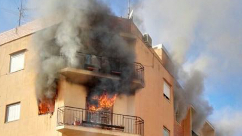 Søndag udbrød der brand på tredje sal i en bygning på fire etager på Calle Bonaire i Carcaixent, Valencia.