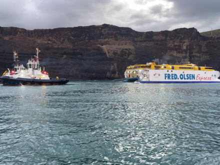 Færgen strandede, da den var vej ind i Agaete Havn på dagens sidste tur mellem Tenerife og Gran Canaria, da et pludseligt og voldsomt vindstød skubbede den ind i et lavt område nær havnen. Siden har flere slæbebåde forsøgt at trække skibet ind i havnen og drage fordel af højvande om morgenen, men det har ganske enkelt været umuligt.
