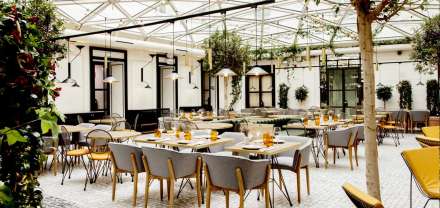 Midt i bygningen er den lyse patio overdækket med en glaskonstruktion. Her ligger restauranten ‘BIF de la Carnicería Beef & Wine’, som er specialiseret i kød fra økologiske gårde. Også en cocktail kan nydes her.