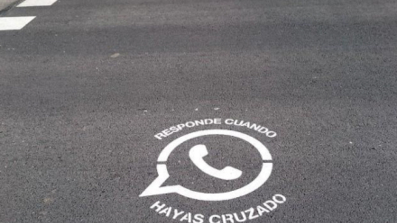 Der er skrevet beskeder som: "Te contesto luego" og "Espera, voy a cruzar"- ”Jeg svarer senere” og ”Vent, jeg er lige ved at krydse”.