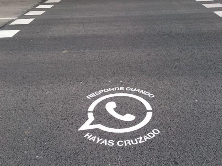 Der er malet tegn ved 80 fodgængerfelter i Murcia, der advarer om brug af Whatsapp eller at høre musik, når man færdes i trafikken - også selv om det er til fods.