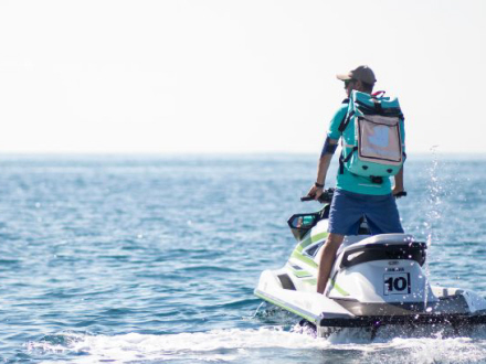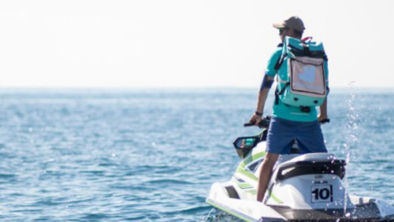 Mad-leverings-appen Deliveroo har nemlig udvidet sin leveringsform med landscootere til også indkludere vandscootere langs Spaniens mest populære kyster.