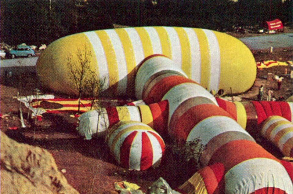 Ved Designkongressen på Ibiza i 1972 blev de deltagende studerende opfordret til på forhånd at forberede dele af den oppustelige by, som så blev samlet på stedet.