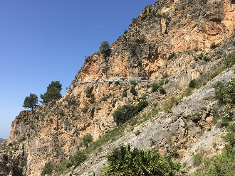 Over kuperet terræn som i Ronda-dalen og ved El Chorro og langs Middelhavet på strækningen fra Estepona til Nerja.