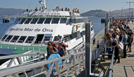 Turister kommer dertil med både, der sejler hele sommeren fra Rias Baixas