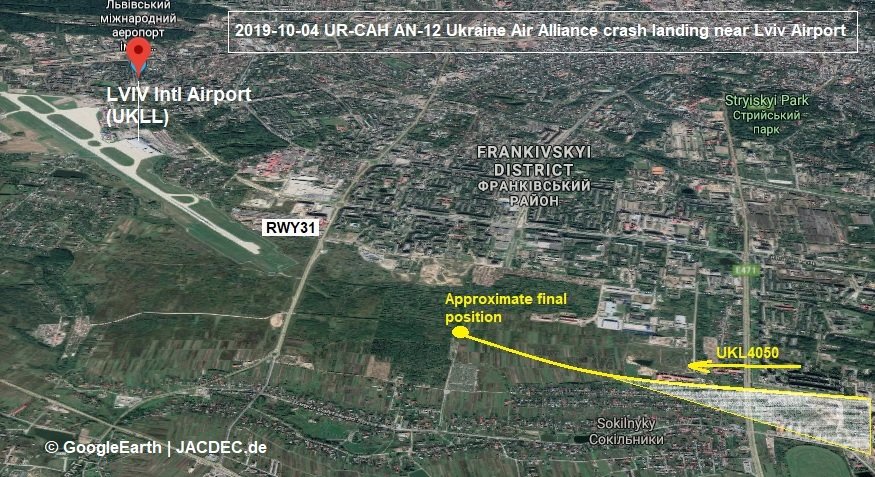 Men kort før landingen sendte besætningen en melding brændstofsproblemer, og så gik flyet ned cirka 1,5 kilometer fra landingsbanen ved Lviv.