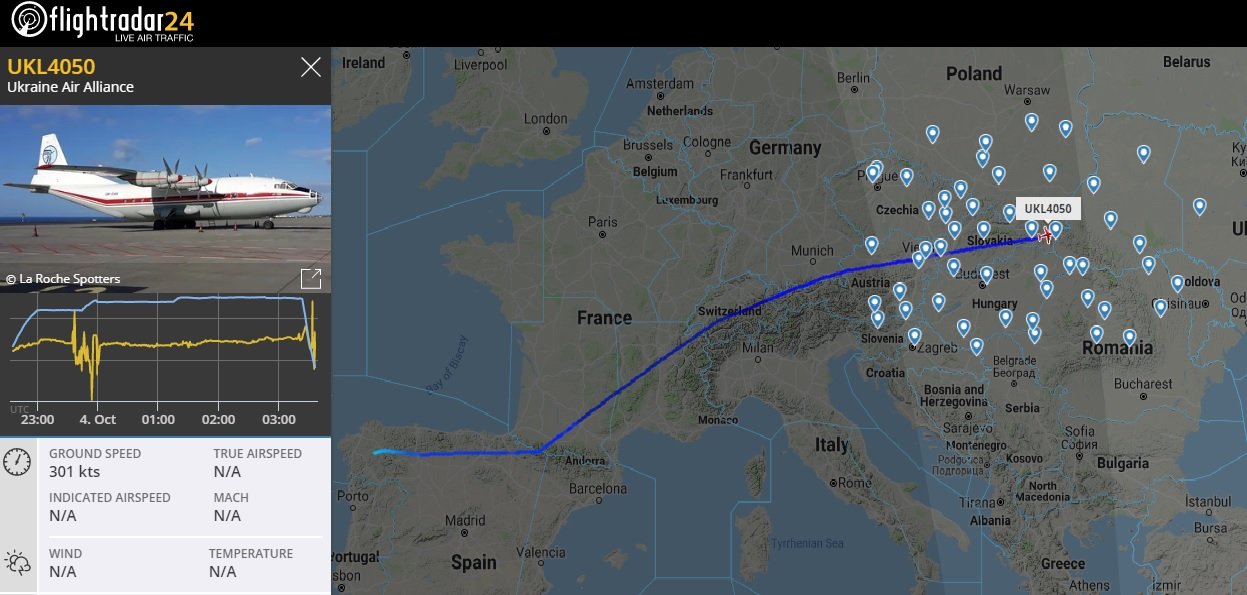 Fly nummer UKL4050 skulle til Ukraine i går. Det lettede fra Vigo klokken 22:19 og steg gradvist og planmæssigt til 25.000 fod.