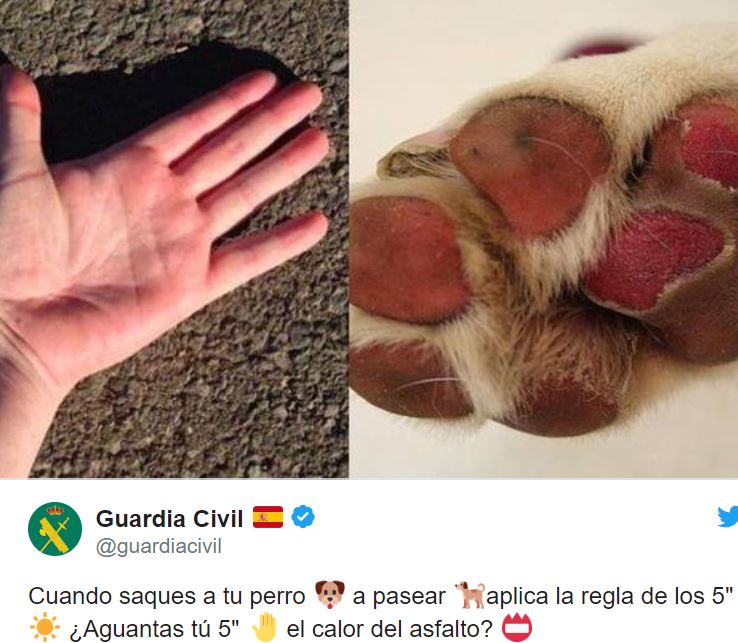 Reglen er blevet udsendt fra Guardia Civil, der kalder det for en "fem sekunders-regel", der altså kan afgøre, om fortovet er for varmt til hundepoterne.