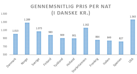Tager man et gennemsnit af alle lande, som indgår i undersøgelsen, ligger opholdsvarigheden på 5,2 dage, mens det gennemsnitlige betalte beløb ligger på 136,74 euro per nat for et dobbeltværelse.