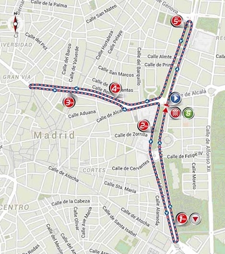 Starten går klokken 16:48 og promenadekørslen til Madrid er cirka 70 km.