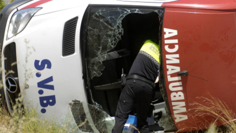 Det kan ikke have været rart at være inde i ambulancen, da den væltede