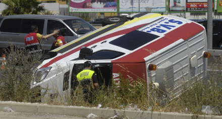 Drama på vejen i går nær L'Aljup-shopping-centret i Elche, da rutinemæssige transport mellem to sygehuse pludselig udviklede sig, da ambulancen kolliderede med en personbil.