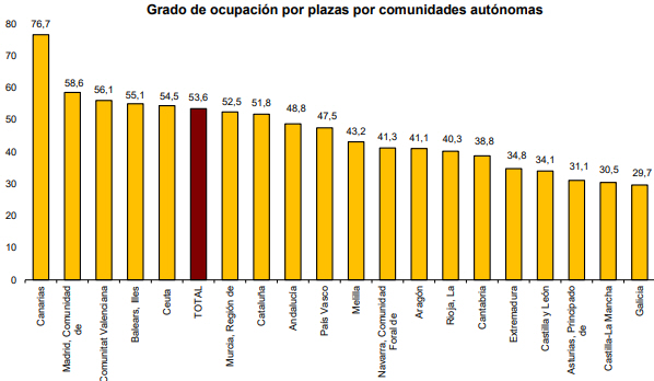 Belægningsprocenten var højst på De Kanatiske øer og lavest i Galicien