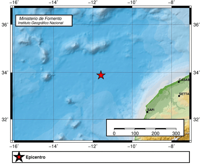 Lidt længere nordpå blev der registreret et skælv klokken 06:37 lokal tid på hele 4,3 på Richterskalaen. Skælvet var på 40 kilometers dybde og opstod i farvandet ud for Marokko, vest for Casablanca: