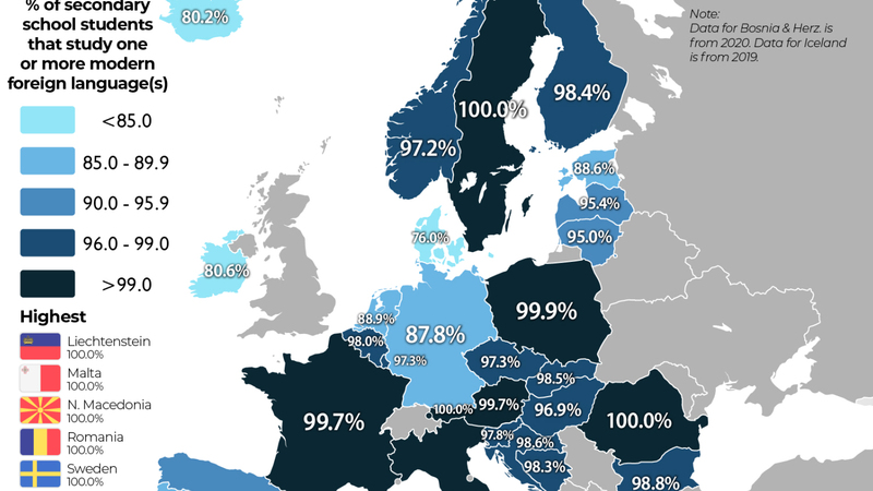 Men hvor stor en procentdel af skoleeleverne studerer egentlig et fremmedsprog i Europa?
