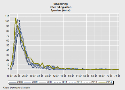Ifølge tallene fra Danmarks Statistik er der så godt som ingen over 35 år, der er flyttet til Spanien siden 2008, mens antallet af unge indvandrere slog rekord sidste år.