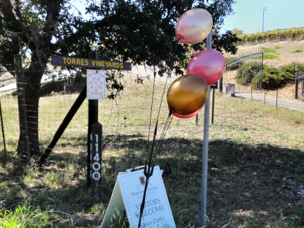 Den eneste vingård vi så med festlige balloner ved indkørslen