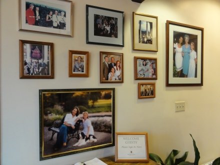 Familiebillederne på væggen i receptionen