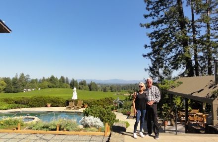 Her poserer vi foran den smukke udsigt fra Marimars private villa på vingården
