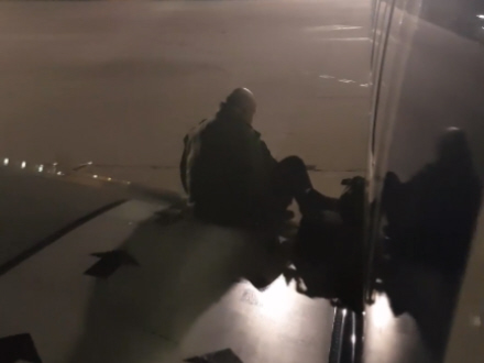 Han måtte dog opgive sit forehavende, da lufthavnspersonalet forsøgte at stoppe ham fra landjorden.