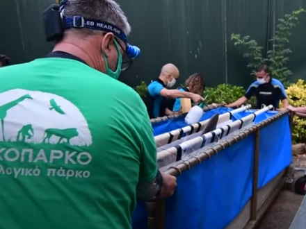 Vel fremme på destinationen kom delfinerne hen i nogle akklimatiseringsbassiner, hvor de vil hvile, indtil de bliver sat sammen med resten af delfinerne i Attica Zoological Park.
