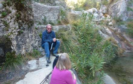 Hanne og Erik ved vandfaldet på El Caminito de la Reina