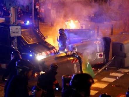 Politiet reagerede ved at skyde med skumkugler for at sprede demonstranterne. Barrikader blev opsat af møbler og containere og sat i brand. Fliser blev taget op fra fortovene og kastet mod politiet.