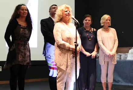 Fra venstre: Marta Rey (nu pensioneret), Katja Thirion (tysk), Mario Bravo (byrådsmedlem med ansvar for udlændinge-kontoret), Anette og Luisa Machen (engelsk)
