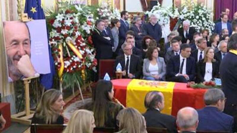 Alfredo Pérez Rubalcabas båre blev lørdag bragt til Parlamentets kapel, hvor den blev modtaget af hans enke, Pilar Goya, fungerende Premierminister Pedro Sánchez, Ana Pastor fra Kongressens præsidium, Pío García-Escudero fra Senatets samt præsidenterne for henholdsvis Forfatningsdomstolen og Højesteret Juan José González Rivas og Carlos Lesmes.