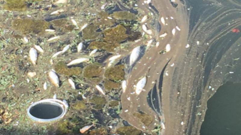 Fiskene, størstedelen er multe, har måtte lade livet, da der har været et saltvandsudslip i floden.