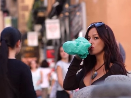 Kvinden – ung og charmerende - stillede sig på et almindeligt gadehjørne midt i Madrid ved højlys dag med en ølflaske i den ene hånd. Hun lod som om, at hun var godt beruset.