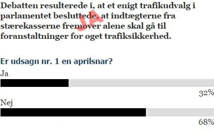 Ja, det var en Aprilsnar. 68 procent troede på, at et trafikudvalg kunne blive enige så hurtigt