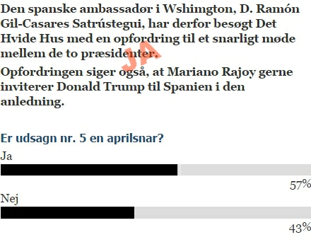 Godt halvdelen af læserne (57 procent ) - men heller ikke flere - gennemskuede, at Mariano Rahoy ikke var blevet jaloux over, at Lars Løkke Rasmussen mødte Donald Trump før ham.