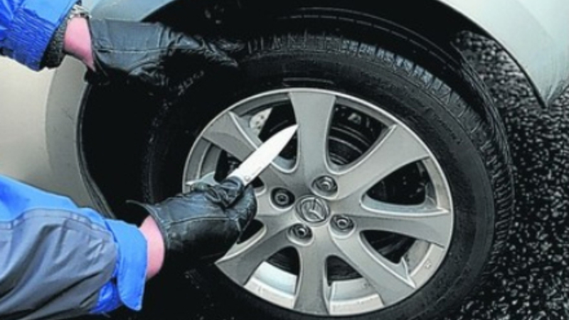 Ifølge theolivepress.es tog politiet manden på fersk gerning, da han var ved at punktere dækket på en parkeret bil.