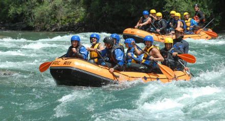Descenso (river rafting) består i at sejle ned ad turbulente floder i en tømmerflåde, kano eller kajak, som kan være lavet af et massivt eller oppusteligt materiale.