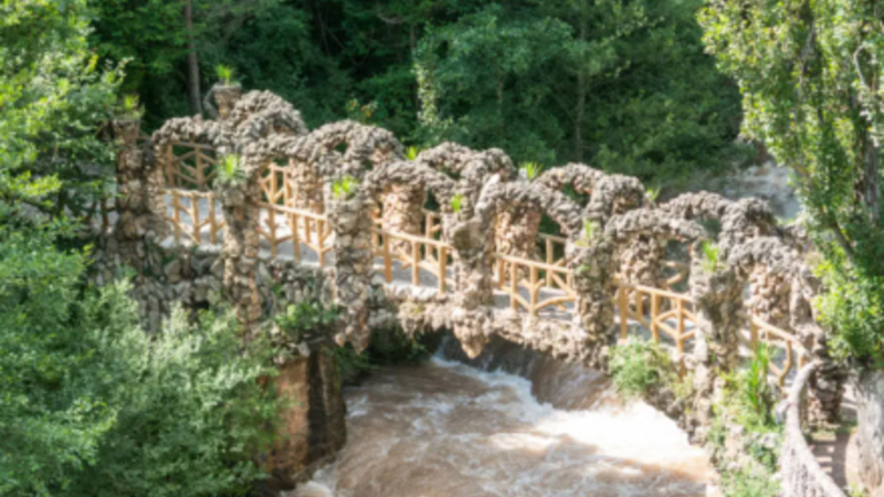 Knap to timers kørsel fra den populære Park Güell i den nordlige del af Barcelona-provinsen findes noget lignende. Her opførte Antoni Gaudí nemlig en have i samme stil, men i mindre skala, og den bliver ofte overset.