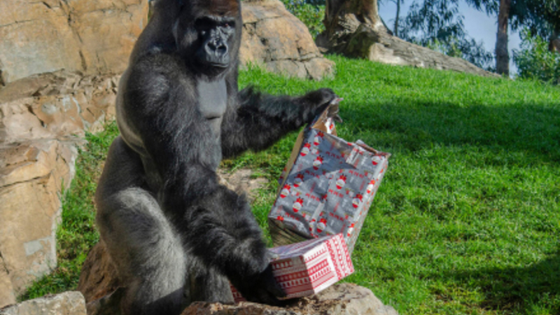 Løver, elefanter, surikater, gorillaer og chimpanser har tyvstartet på julen, og fik i går en ordentlig bunke overraskelser og gaver fra julemanden.