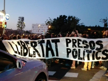 Tusindvis af demonstranter er lige nu på gaden i Barcelona og kræver frihed til "de politiske fanger" - de fængslede tidligere catalanske politiske ledere.