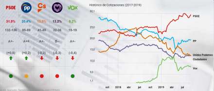 PSOE vil gå yderligere frem til mellem 132 og 136 mandater fra de nuværende 123.