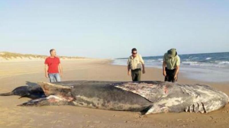 Tirsdag blev der fundet en ni meter lang haj på Doñana-stranden i Andalusien.
