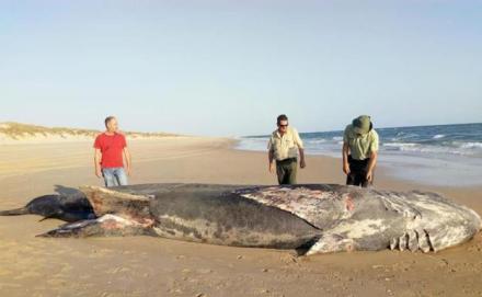 Este tiburon de 9 metros de largo aparecio el pasado martes en la playa de #Doñana