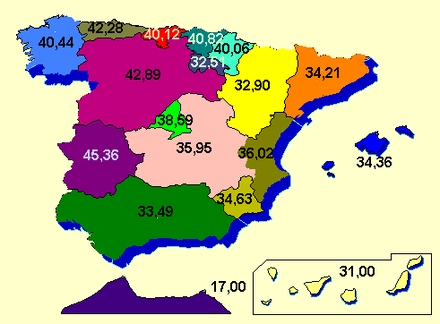 Castilla y León ligger på en 2. plads og Asturien på en 3. plads.