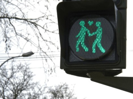 I stedet for den generiske, enlige røde tændstikmand kan man nu se et par røde eller grønne mænd eller kvinder holde i hånd.